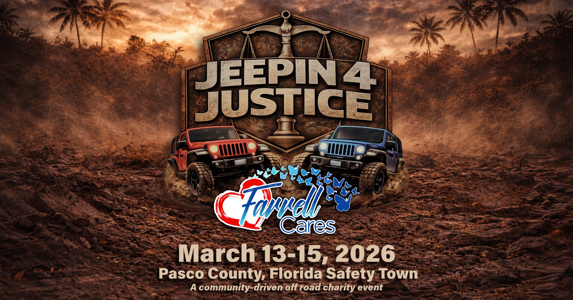 Jeepin4Justice is a 3-day adventure, March 13–15, 2026, at the Concourse Rotary Pavilion in Pasco County.